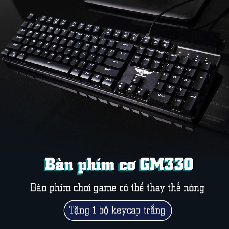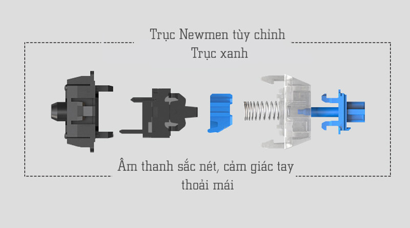 - Tặng kèm bộ keycap màu xám trắng
