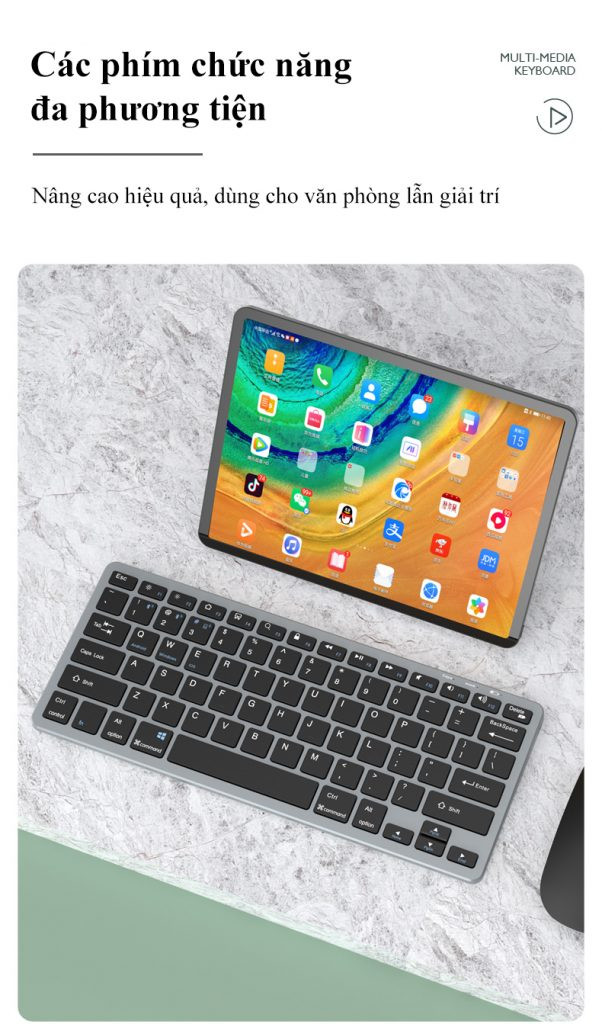 Bàn phím không dây Newmen BT713 đa giao thức dùng cho iPhone, iPad, Tablet, Macbook, Laptop, PC,... kết nối đồng thời 4 thiết bị.