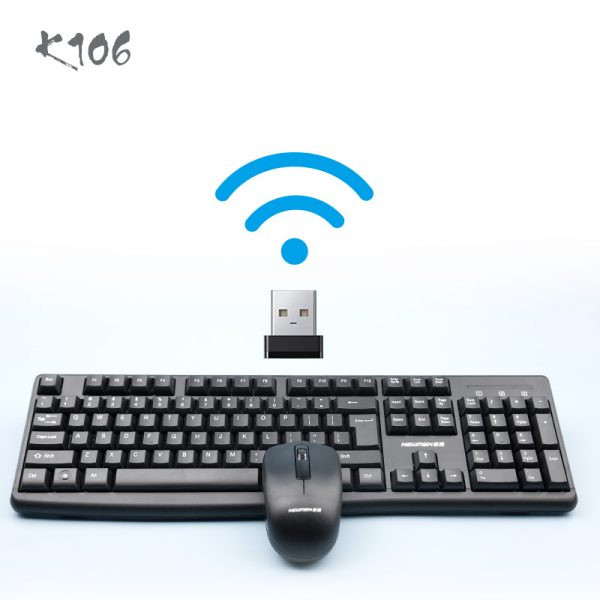 Bộ phím chuột không dây Newmen K106 kết nối 2.4Ghz. Phím nổi gõ nhẹ êm, phản hồi phím tốt. Chống tràn nước, tiết kiệm pin, gọn gàng sử dụng thuận tiện văn phòng, gia đình, bàn phím chuột đáp ứng cả nhu cầu giải trí.