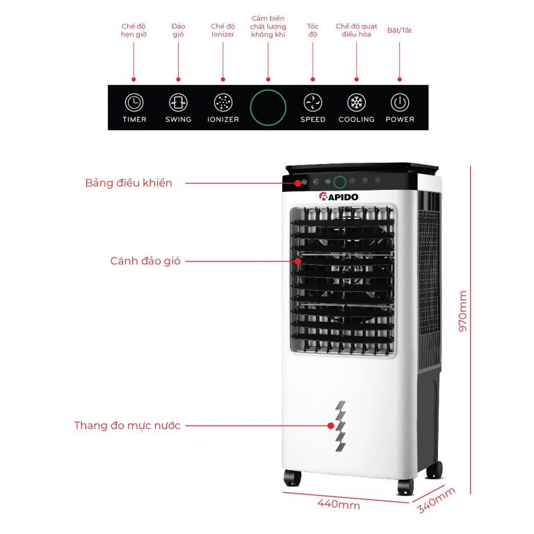 Quạt điều hòa không khí Rapido Everest 6000D tự động cảnh báo không có nước khi bật bơm