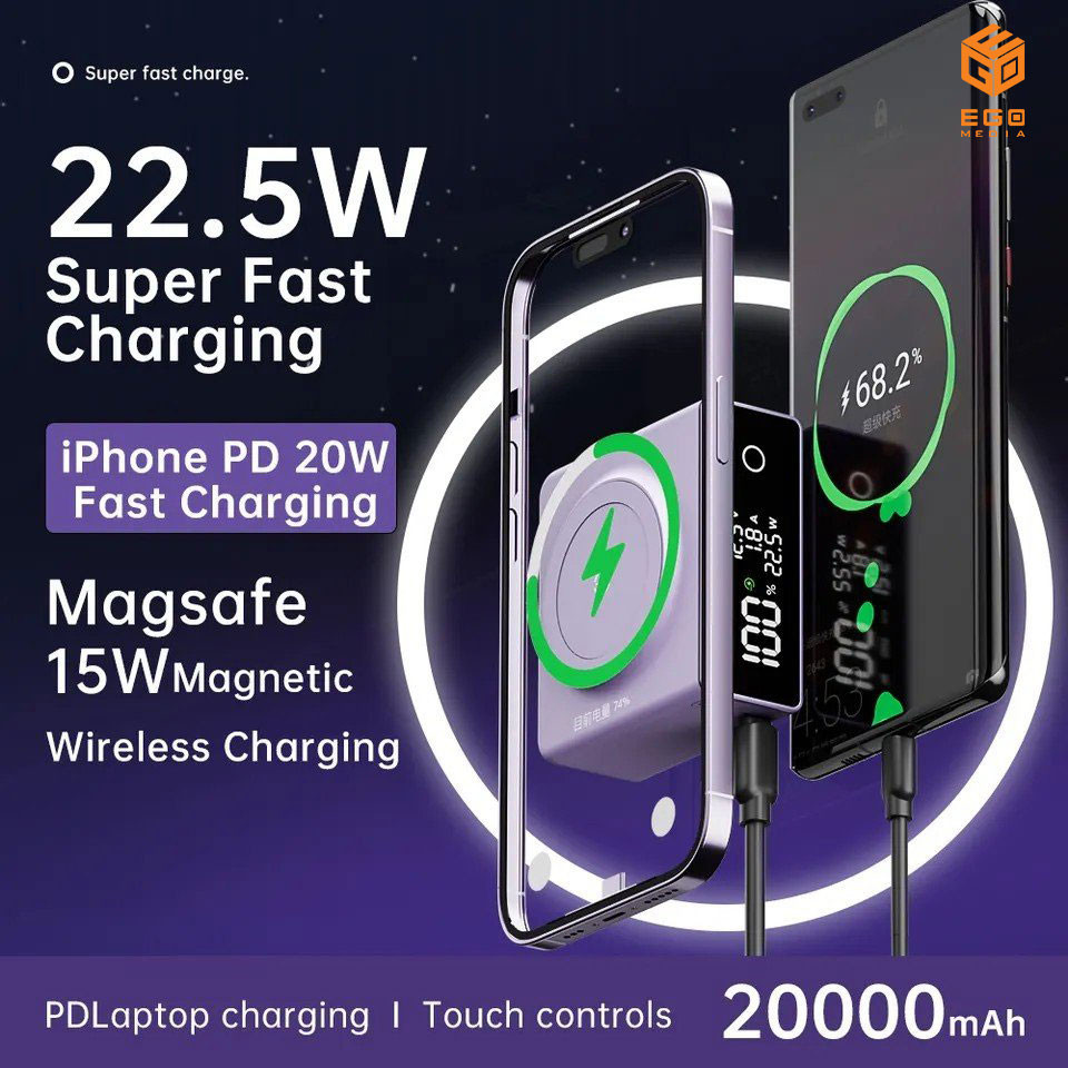 Sạc dự phòng Magsafe không dây từ tính Q7 - Thiết kế mới 20000mAh 15W không dây sạc PD 20W sạc nhanh với cảm ứng LED hiển thị cho MacBook Pro máy tính xách tay từ ngân hàng điện