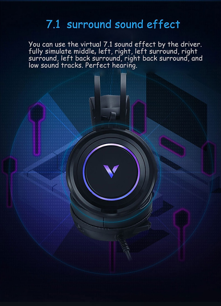 Tai nghe Gaming Rapoo VH500C trang bị công nghệ giả lập âm thanh vòm 7.1, mang lại âm thanh sống động, và khả năng tái tạo âm thanh các hướng tốt nhằm phát hiện đối thủ tốt hơn