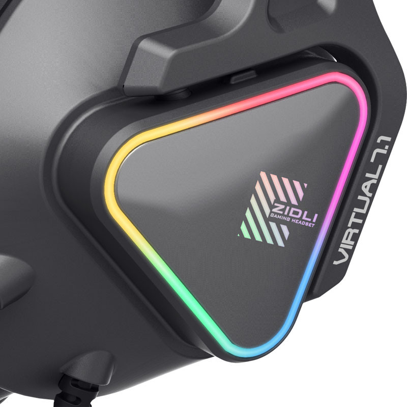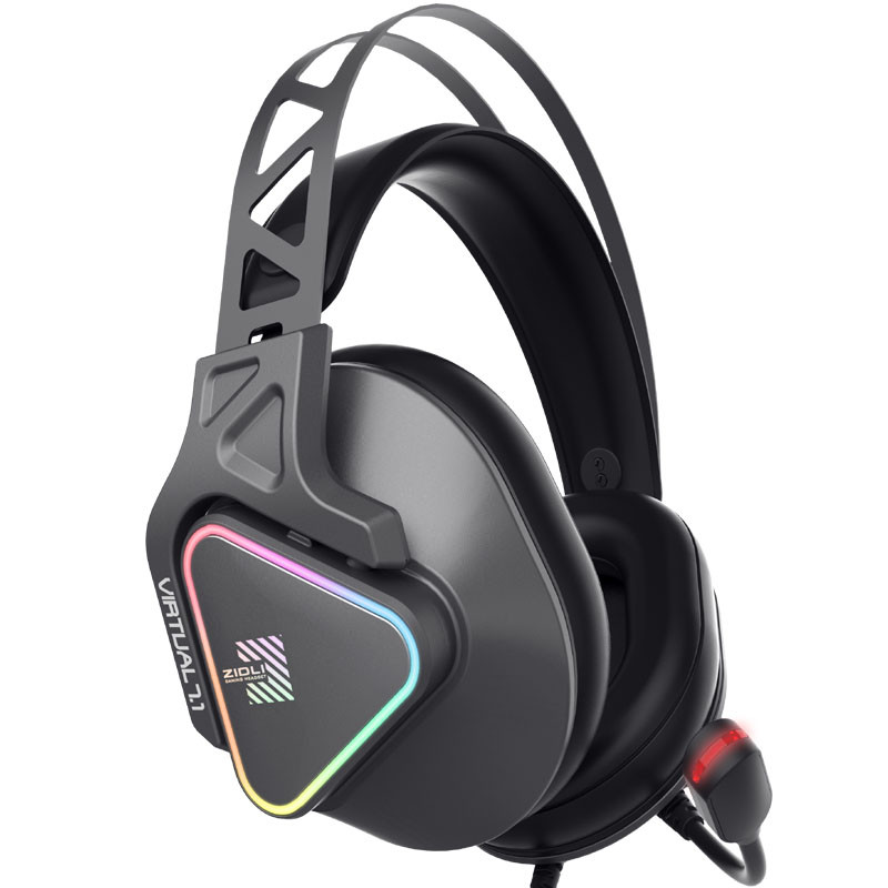 ZIDLI ZH27 Shocking Sound Tai nghe 7.1 âm thanh vòm cao cấp, kích thước loa lớn 53mm cho âm thanh trung thực cao, mic chống ồn đa hướng, thiết kế khung thép chắc chắn, hệ thống khung cơ học hoàn toàn mới tự động xiết ôm đầu chống mỏi mệt. Vật liệu cao cấp, chết tác tinh xảo. Đèn Led RGB hiệu ứng đẹp. Đệm tai mềm và lớn. Kết nối có dây USB chống nhiễu. Mic đa hướng âm thanh rõ ràng, thoại thời gian thực. nút ENC chống ồn chủ động. Chiều dài cáp 2.5m. Sử dụng tuyệt vời cho chơi Game, nghe nhạc và học trực tuyến.