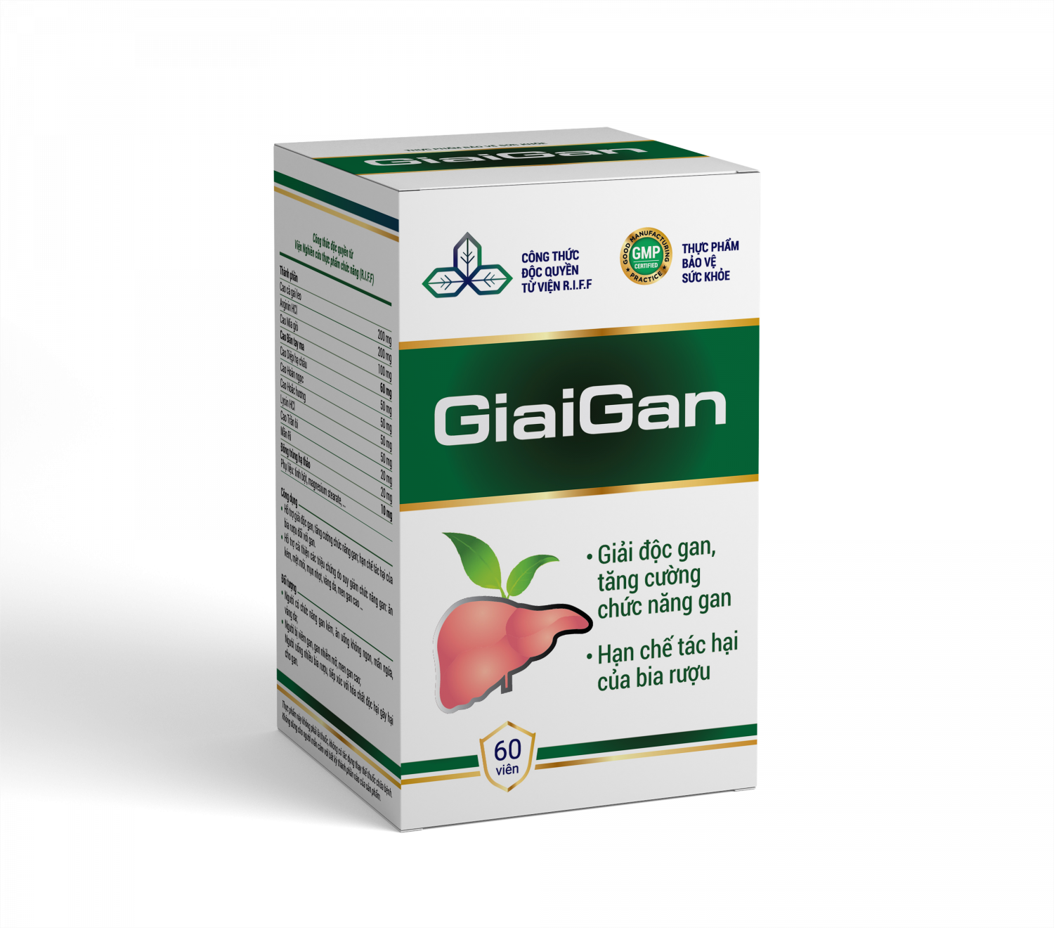 Thực phẩm chức năng GiaiGan giải độc gan tăng cường chức năng gan được nghiên cứu và sử dụng công thức độc quyền từ Viện Nghiên cứu thực phẩm chức năng (R.I.F.F), nơi quy tụ nhiều nhà khoa học hàng đầu như TS Nguyễn Hữu Thị, PGS-TS-BS Phạm Văn Hoan, PGS-TS Nguyễn Văn Đạo...chuyên nghiên cứu và chiết xuất thảo dược tại Việt Nam.